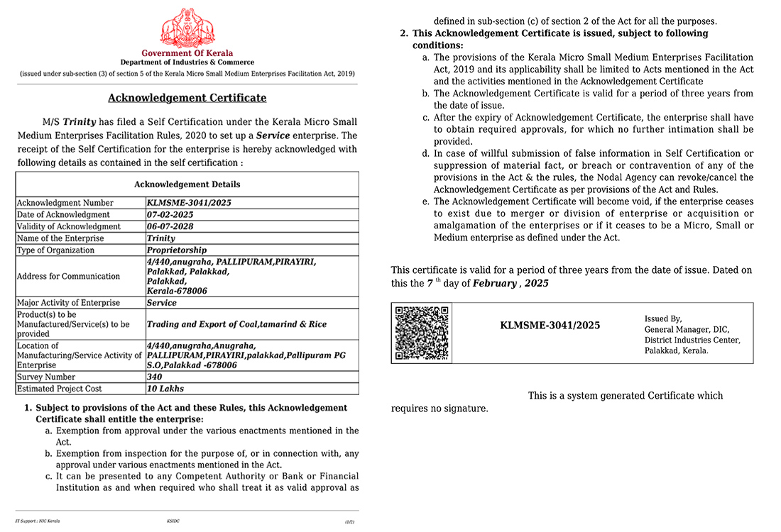 TRINITY is an Indian origin manufacturer, trader and exporter of specialized eco friendly energy products – Coconut Shell Charcoal Briquettes and Food Products. TRINITY products cover a broad spectrum of diverse markets and industries and offers a diversified portfolio to entice many buyers in India and International markets.