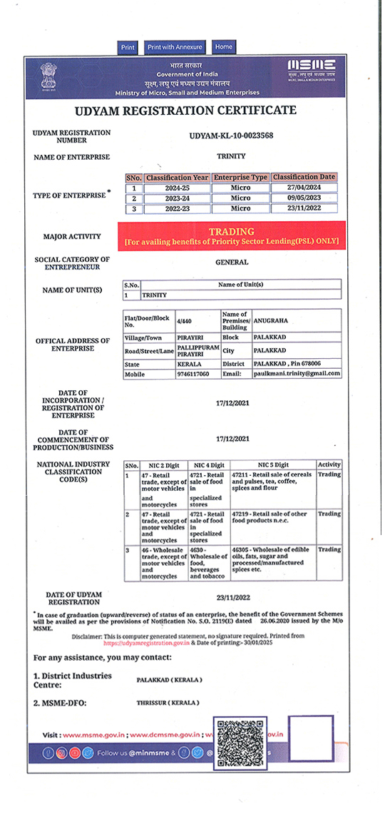 TRINITY is an Indian Origin, specialized in Manufacturing, Sourcing, Trading & Exports of various products and serving as the intermediatory between manufactures and consumers. TRINITY products cover a broad spectrum of diverse markets and industries. TRINITY produces and procures products and offers a diversified portfolio to entice many buyers in India and International markets.